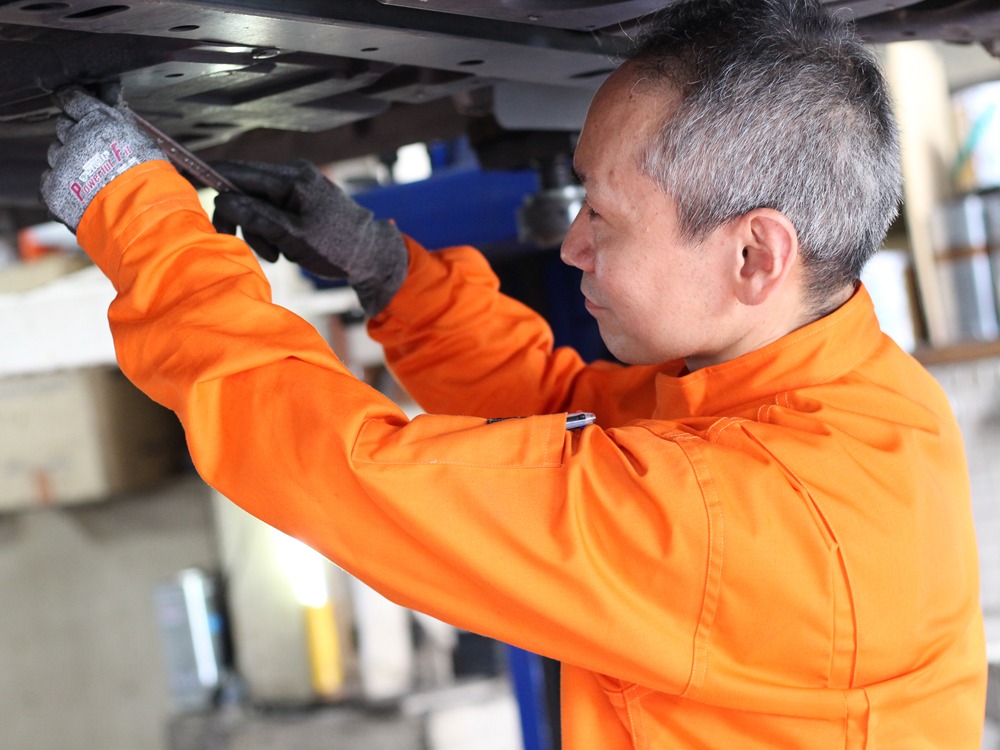 私たちはお客様の車を預かり、少しの不調も見逃すことなく一つひとつ丁寧に作業することを心掛けています。ボンベ交換など重たい作業もあるけど、それがお客様の安全を守るためであるのなら平気です。私たちはあまりお客様の声を直接聞くことはないのですが、他のスタッフから「●●さんがいつも丁寧なメンテナンスをしてくれるから安心して車に乗れるって言ってました」と伝えてくれる時があるのですが、それを聞くと一気にモチベーションが上がりますね!